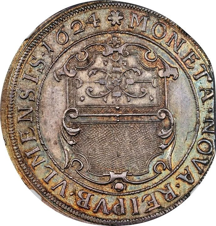 The year 1624 falls early in the war, when silver coinage was heavily relied upon for military financing and trade. As a result, most talers from this era were extensively circulated, making high-grade survivors exceptionally rare.